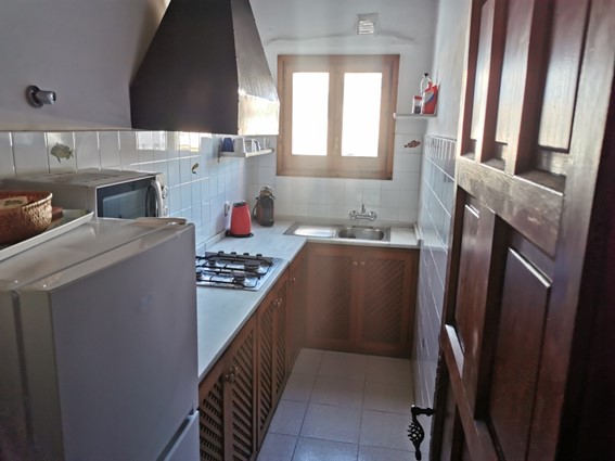 El Ático Chez Swann (núm. de licencia HUTB-011906) tiene una capacidad de 2 personas. La superficie es de 56 m2. Tiene una habitación con cama de matrimonio y baño completo, cocina y comedor con sala de estar estilo ibicenco, terraza con mesa y sillas y una vista espectacular. Dispone de aire acondicionado, wi-fi, televisión, libros y caja fuerte. La cocina está equipada con refrigerador, microondas, cafetera de filtro y todos los utensilios necesarios para su uso.
