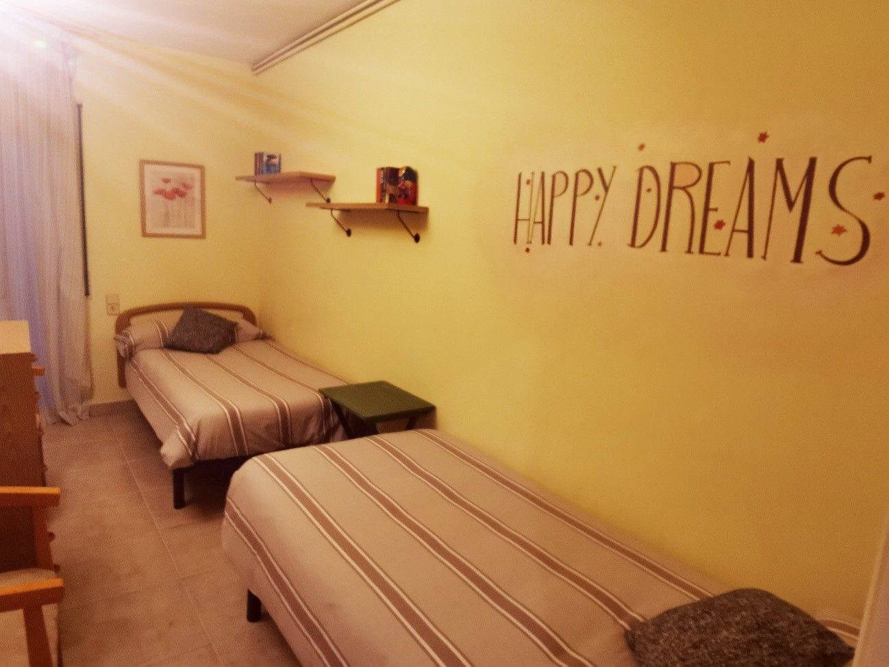 El apartamento, decorado al estilo clásico, está equipado con ropa de cama y toallas de baño. El baño dispone de bidé, jabón, champú, espejo de aumento y secador de pelo. La cocina dispone de los utensilios necesarios para poder cocinar como cubiertos, menaje de mesa, cocina de gas, microondas, fregadero, nevera, cafetera de filtro… Además tiene lavadora y plancha, aire acondicionado, calefacción central, Wi-fi, televisión, libros en préstamo, e información turística de Sitges y el Garraf.