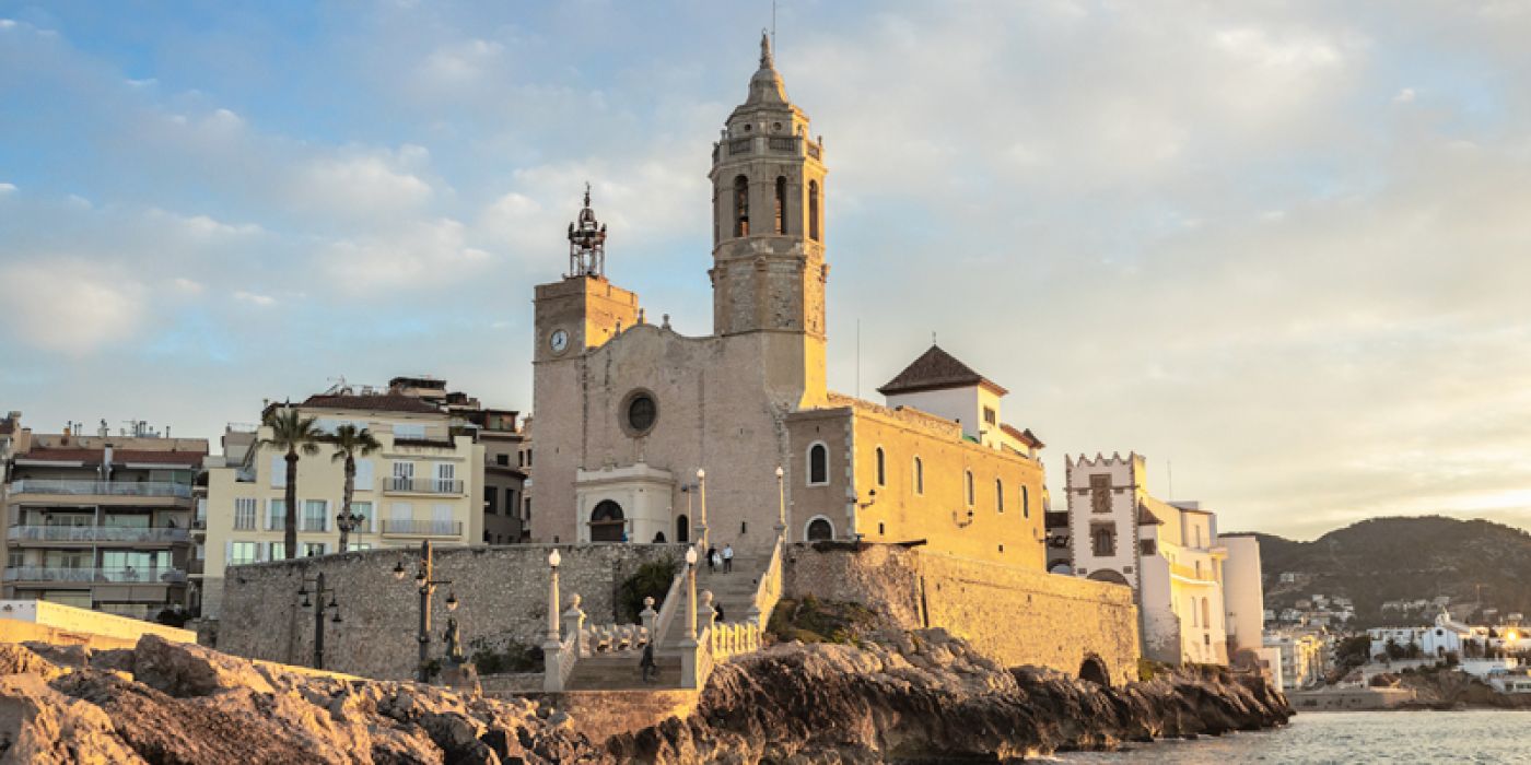 La localización estratégica de esta iglesia la ha convertido en uno de los iconos más característicos de Sitges. Una auténtica estampa costera, al final del paseo marítimo y en lo alto del baluarte, tras subir la escalinata podremos ver el cañón apuntando hacia mar  antes de entrar a visitar la Iglesia.