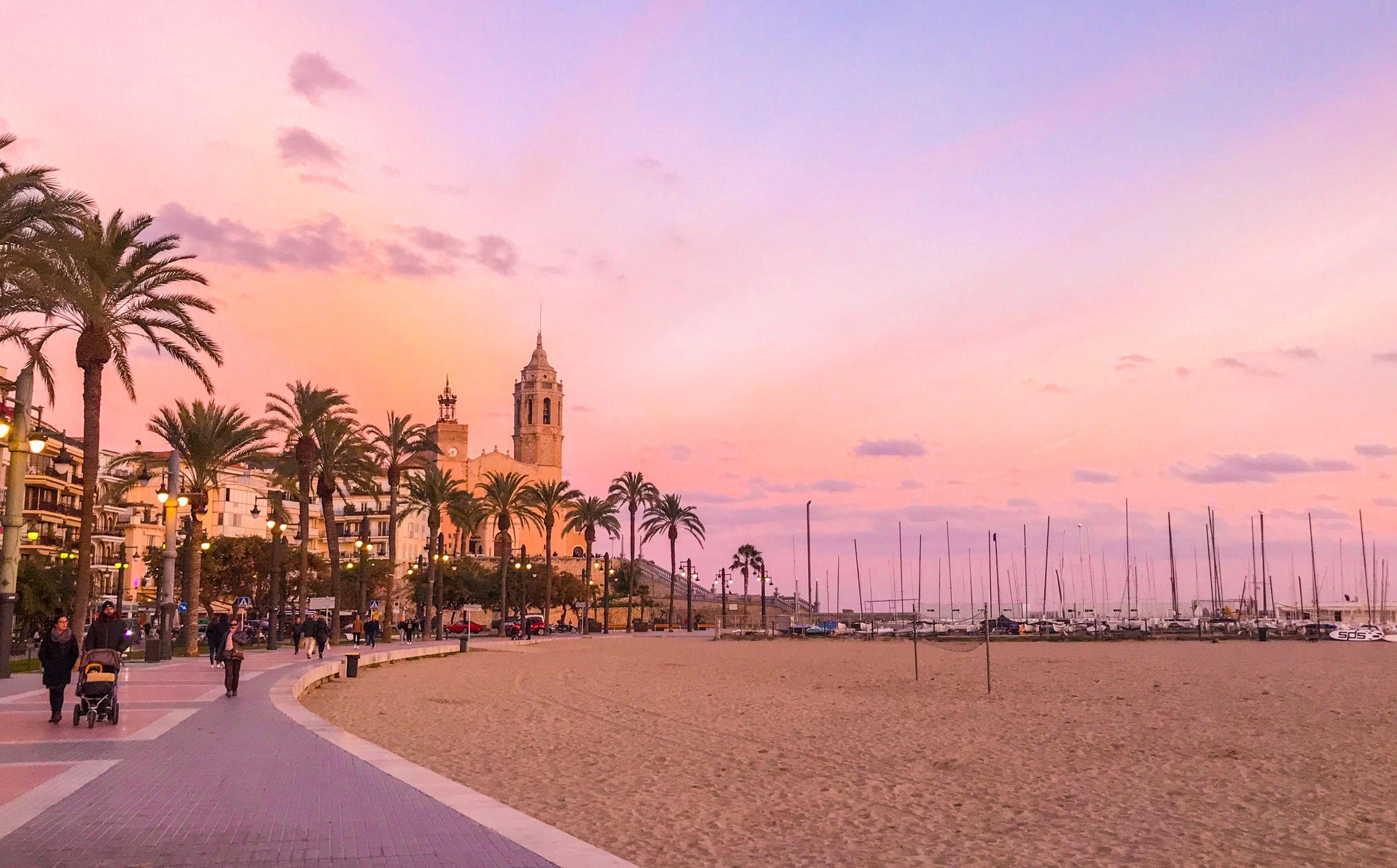 Sitges es un pueblo costero de la comarca del Garraf, situado a unos 40 km al sur de Barcelona y muy bien comunicado por tren (RENFE), autobús (Monbus) y autopista (C32).